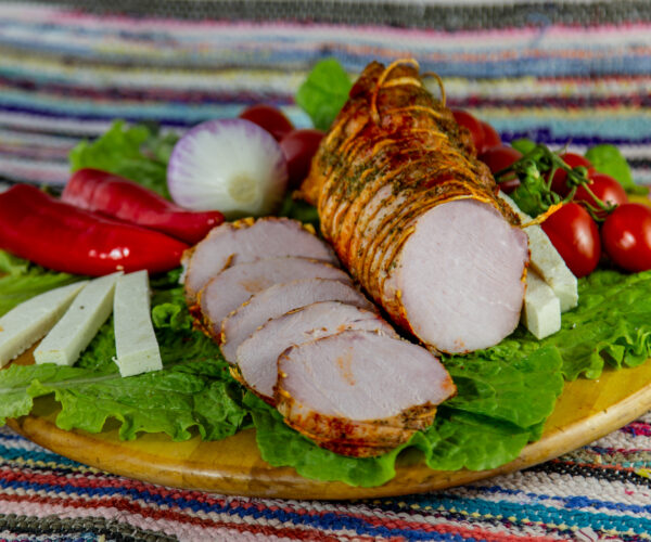 Cârnați din carne de curcan, puțin condimentata. Produs afumat în afumatoare tradițională și cu aport de colesterol mai redus decât carnea de porc.